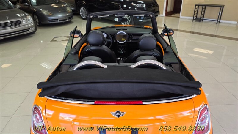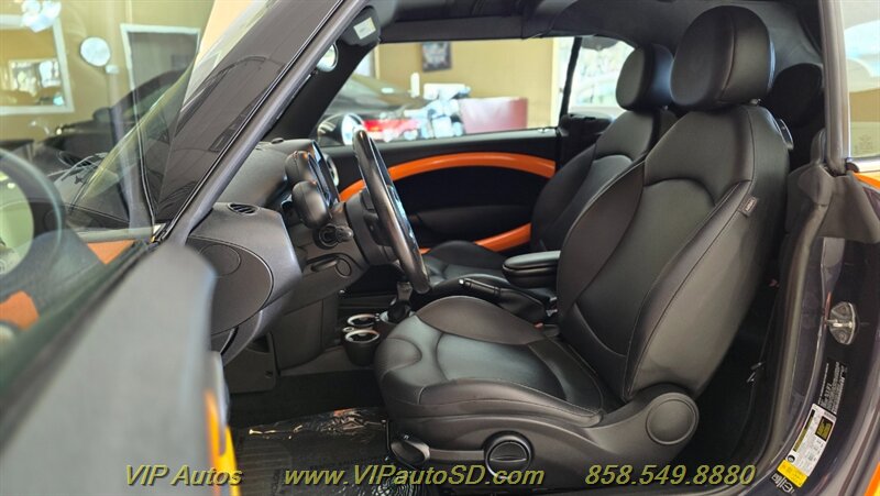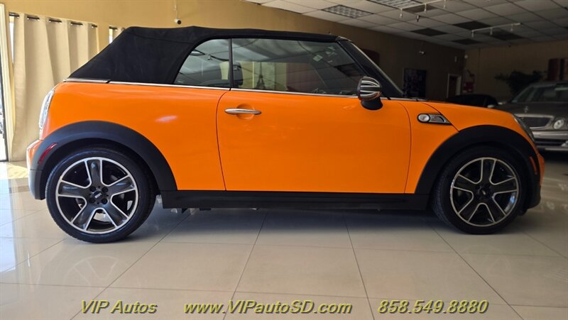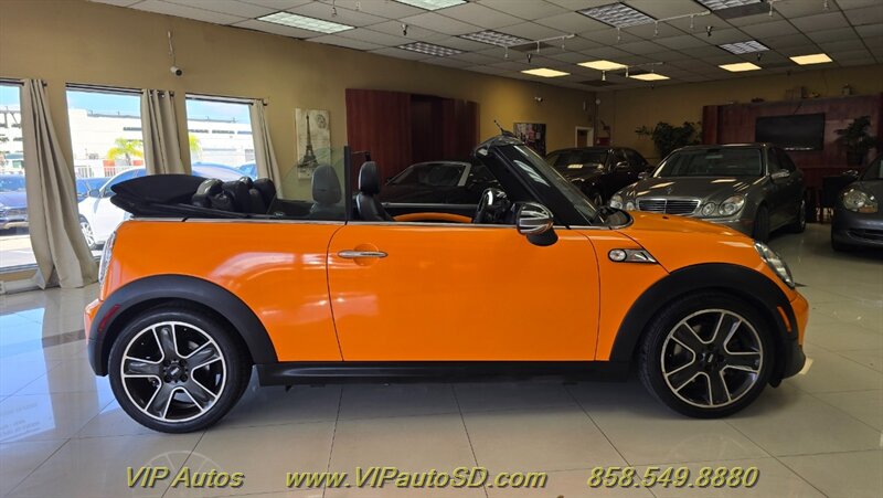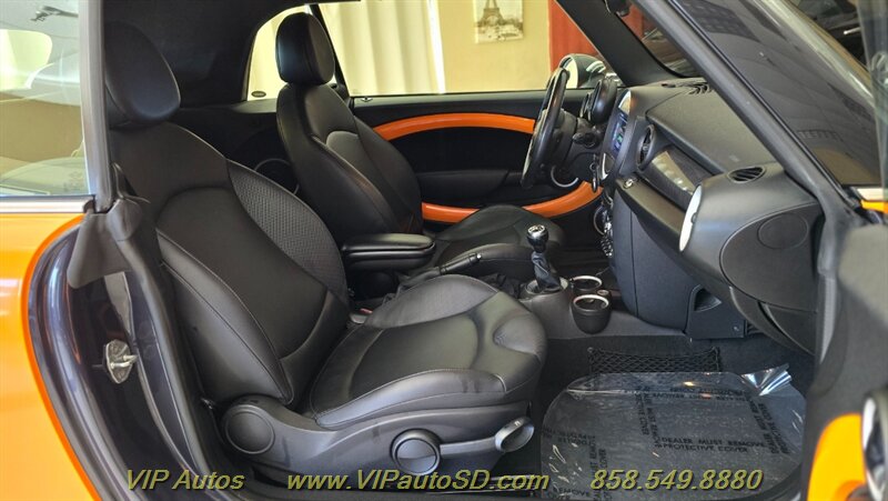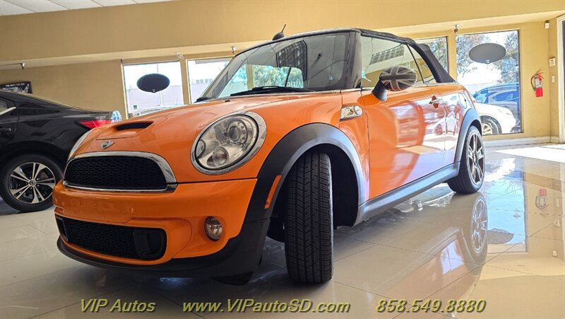 2014 MINI Cooper S Convertible — an invigorating blend of performance, style and open-air fun. Finished in eye-catching Orange with a Black interior, this Cooper S is powered by the factory 1.6L turbocharged inline-4 producing 181 hp and 177 lb-ft of torque, delivering lively acceleration and confident highway passing. Exceptionally low mileage — under 49,000 miles (averaging less than 4,000 miles per year) — and a clean CARFAX report make this a well-preserved example in excellent overall condition. Fuel economy is an efficient 26 MPG city / 35 MPG highway.