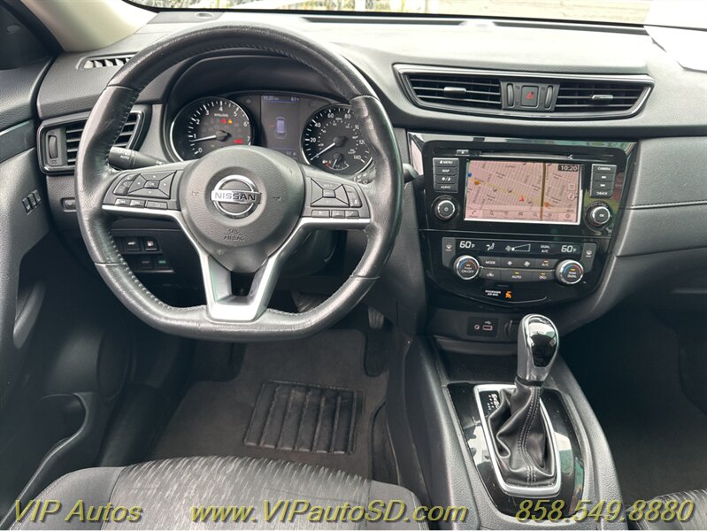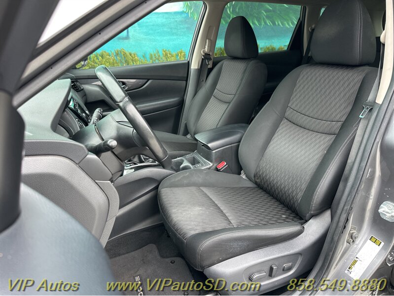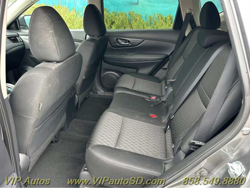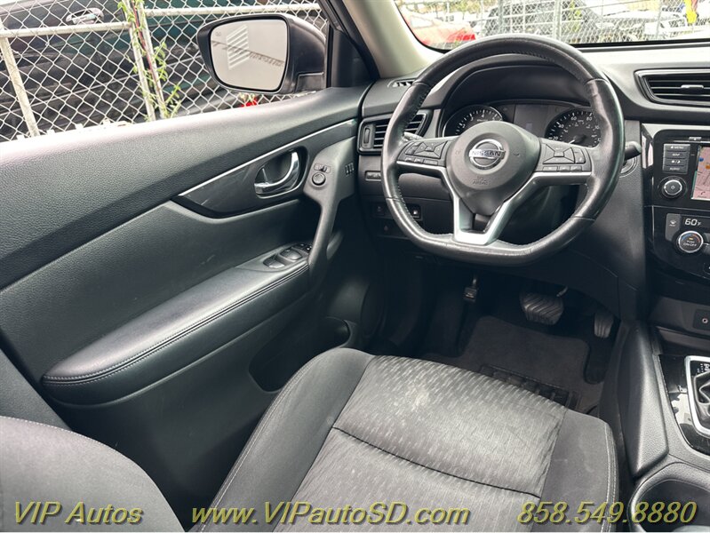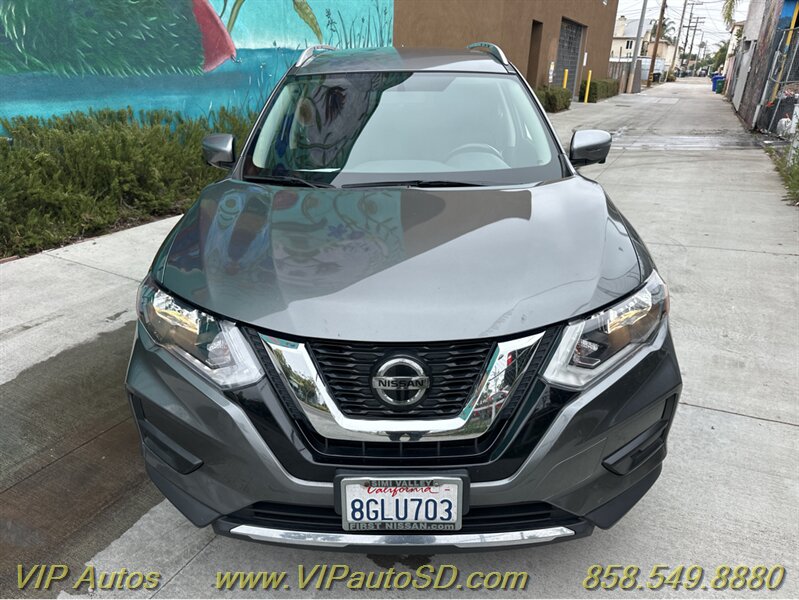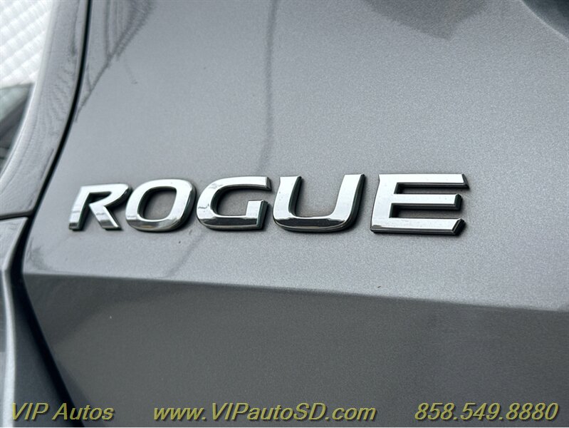 The Rogue’s exterior shows a contemporary, aerodynamic silhouette highlighted by Nissan’s signature V-Motion front fascia and clean, sculpted body lines. The Gray paint presents crisply and evenly across the body, reflecting the vehicle’s excellent overall condition. The SV trim rides on tasteful alloy wheels that balance ride comfort with visual poise, and practical features such as roof rails and a rear liftgate enhance everyday utility for errands, family trips or weekend gear. Thoughtful exterior detailing and a functional body design make the Rogue both attractive and user-friendly.