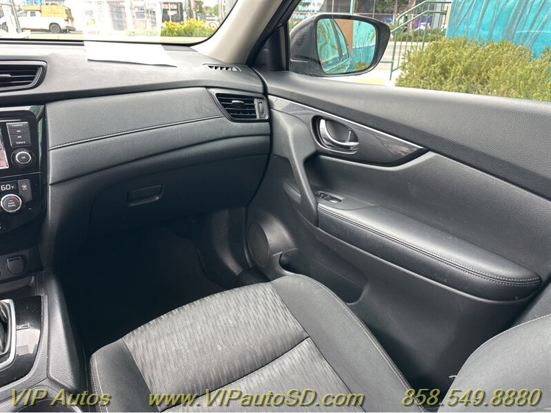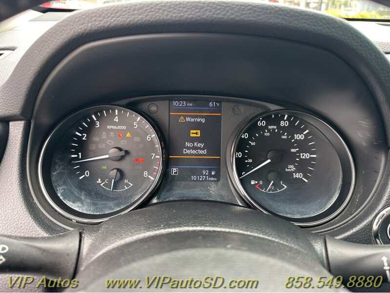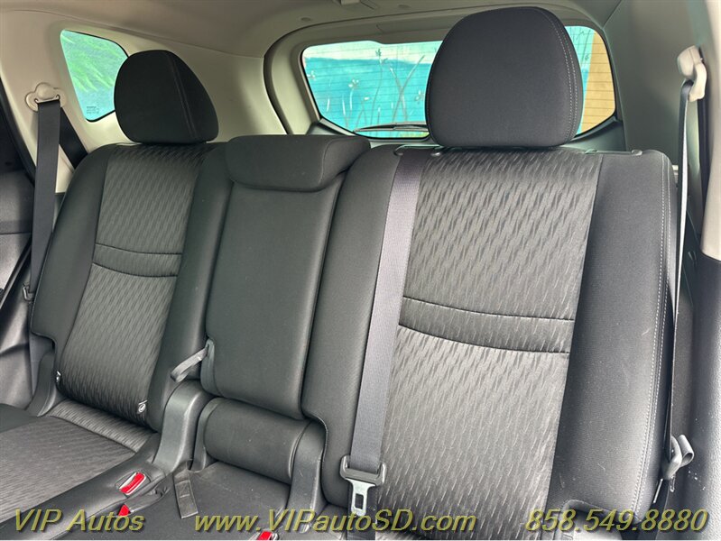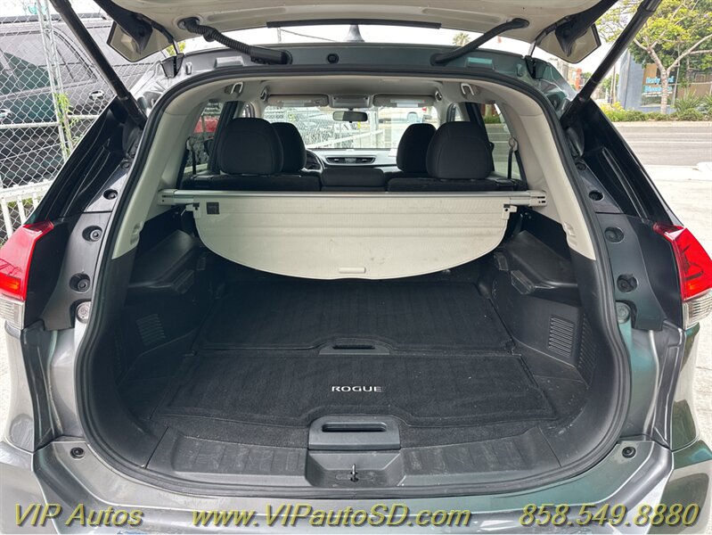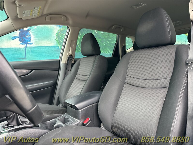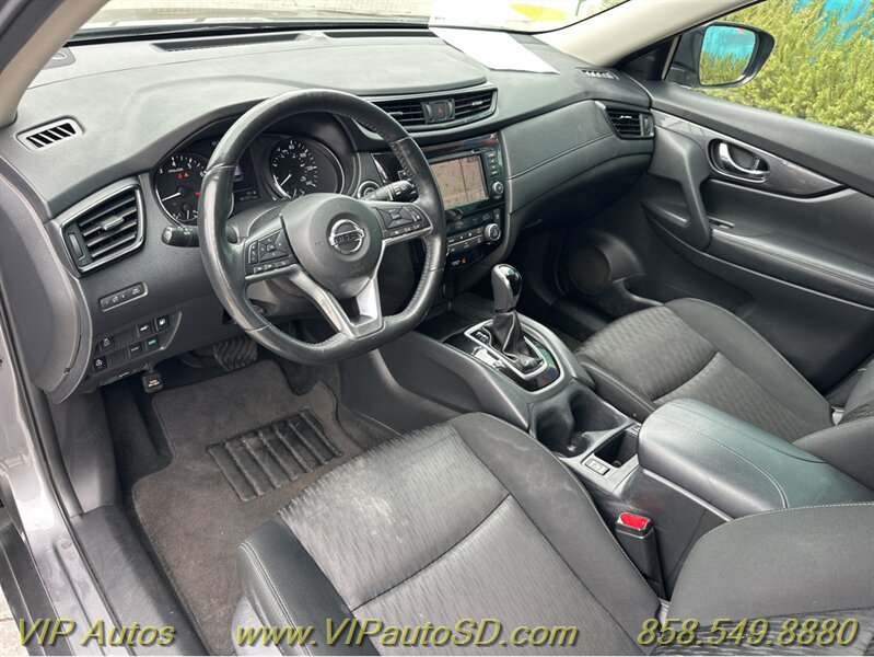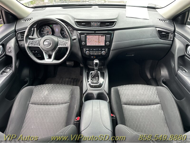 The Rogue’s exterior shows a contemporary, aerodynamic silhouette highlighted by Nissan’s signature V-Motion front fascia and clean, sculpted body lines. The Gray paint presents crisply and evenly across the body, reflecting the vehicle’s excellent overall condition. The SV trim rides on tasteful alloy wheels that balance ride comfort with visual poise, and practical features such as roof rails and a rear liftgate enhance everyday utility for errands, family trips or weekend gear. Thoughtful exterior detailing and a functional body design make the Rogue both attractive and user-friendly.